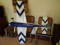 Spektrum DX7 transmitter with AR7000 receiver (full range) with 4 Hitec HS81 servos. Ailerons are independently controlled allowing for Flaperon setup.