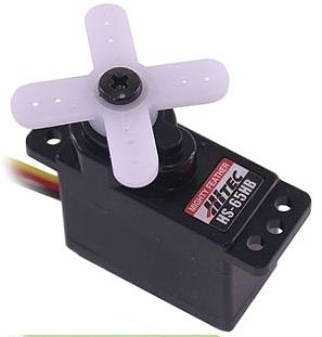 4 x HS-65HK Karbonite gear, analog servos, very nice and quiet.