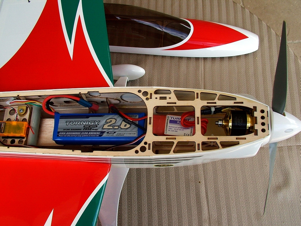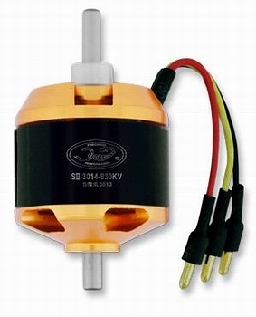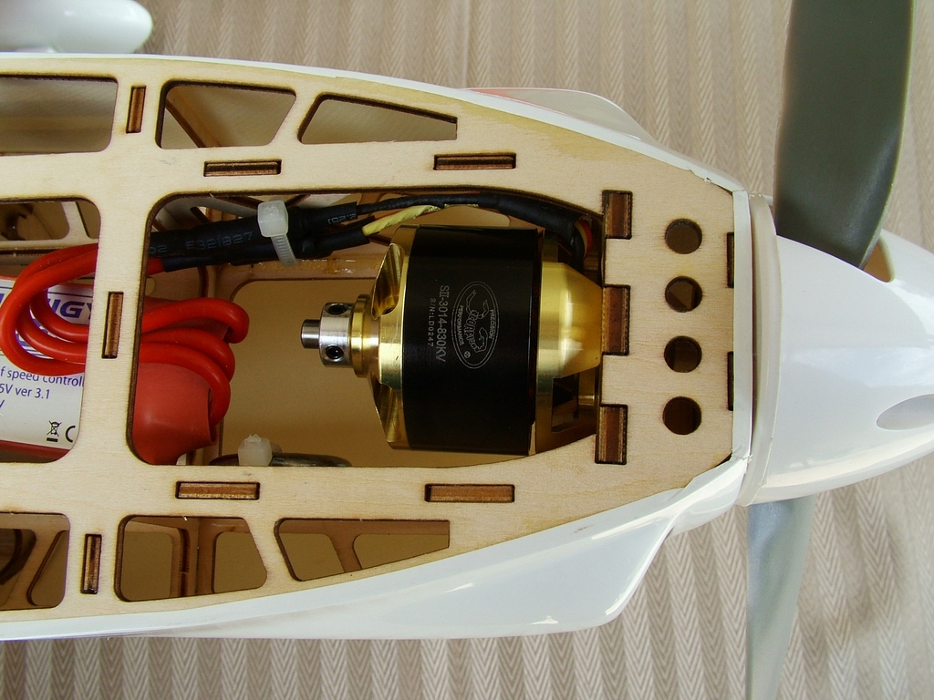 - Scorpion S3014-830kv outrunner - Enough power for good aerobatics.