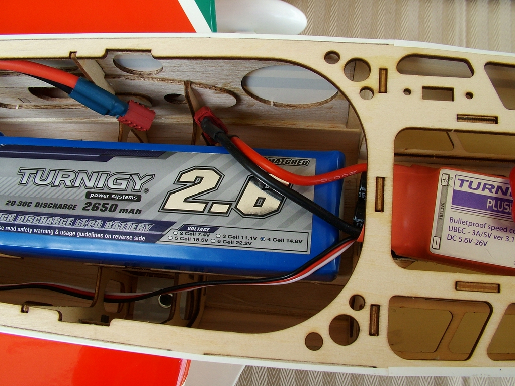 - 40g of Lead weight added next to motor to achieve COG. The nominated battery right forward.