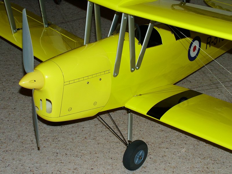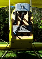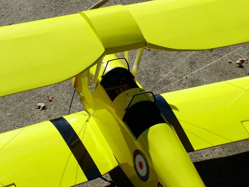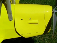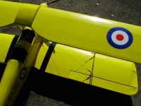 the leading edge of the bottom wing adjacent the fuselage.