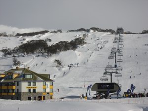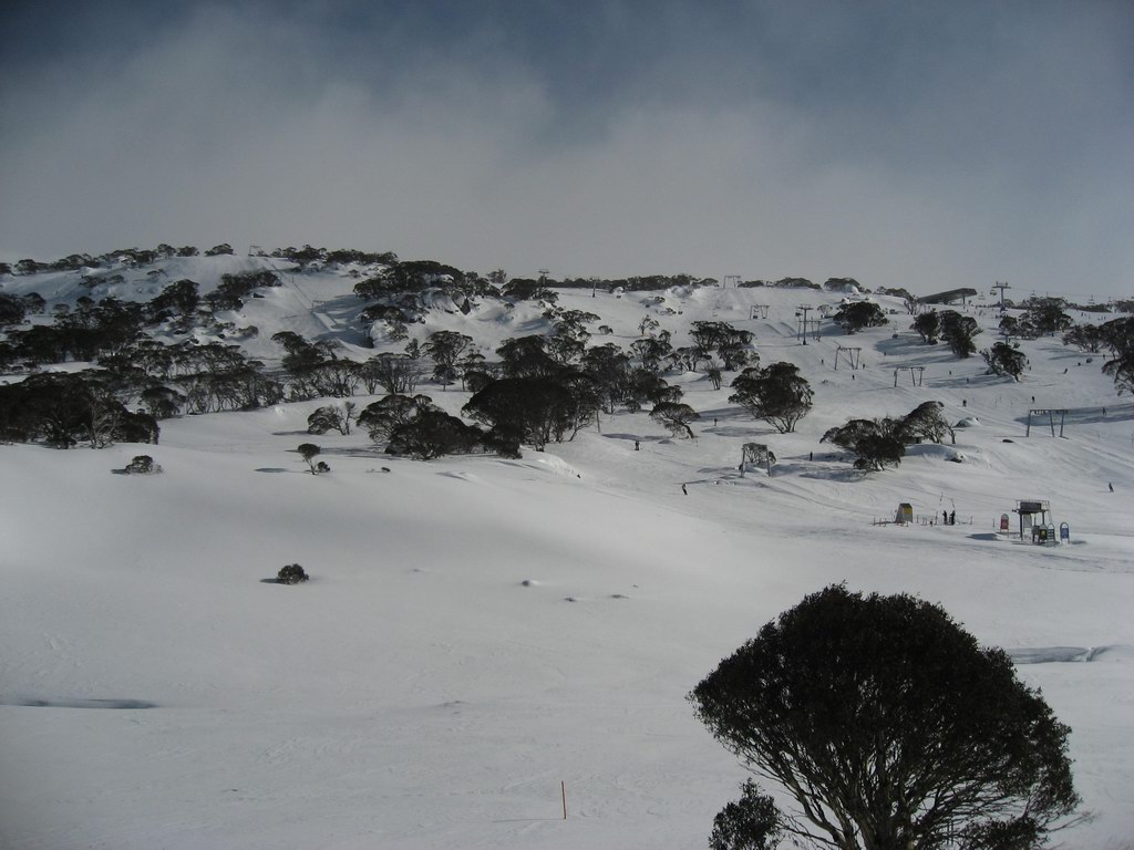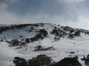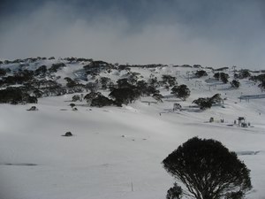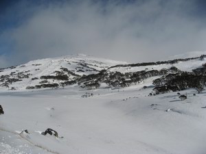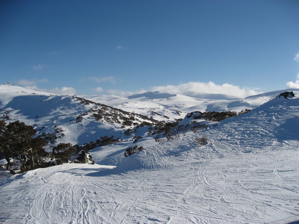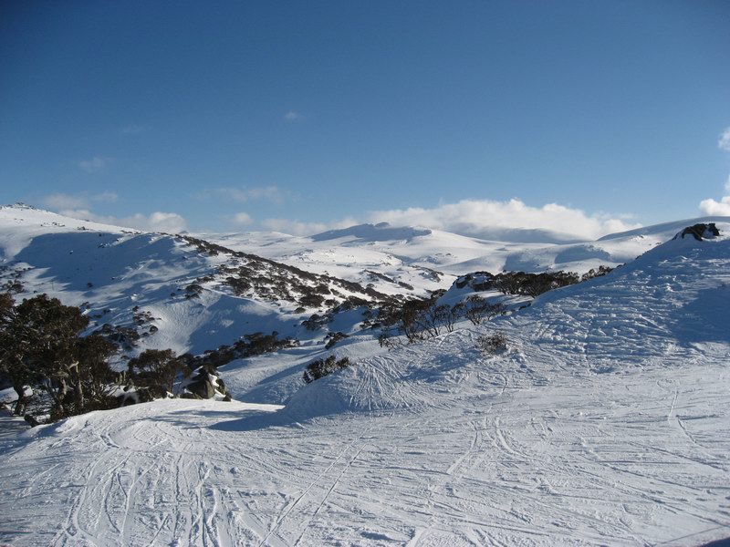 Top of Guthries Pomma looking toward Kangaroo Ridge (shadowed) and Kosciusko, the lowest peak in the far background.